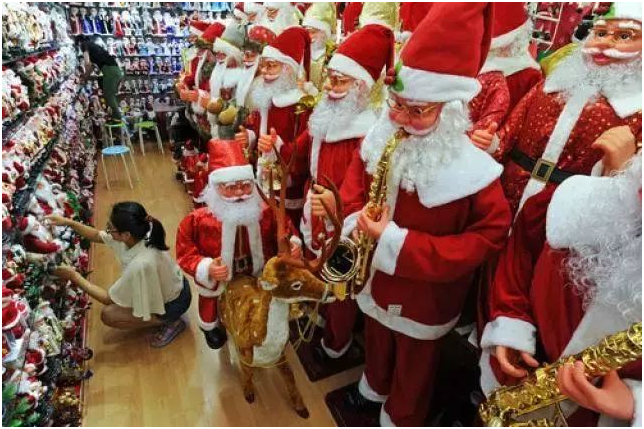 一些圣誕產(chǎn)品工廠對(duì)美國(guó)廣播公司新聞網(wǎng)站說(shuō),他們至少30%的訂單來(lái)自美國(guó),其他一些商品則從義烏運(yùn)往俄羅斯、拉丁美洲和中國(guó)各地。